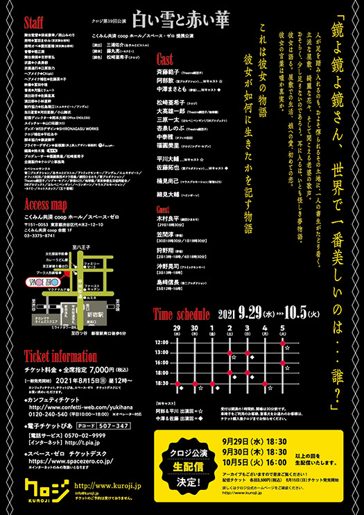 昨年5月に公演中止となりましたクロジ第19回公演『白い雪と赤い華』ですが、この度延期公演が決まりました。